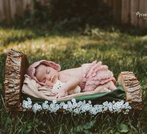 لحظات لا تُنسى مع سريرنا المخصص لتصوير المواليد الجدد، المصنوع من الخشب الصلب لتوفير خيار ثابت.