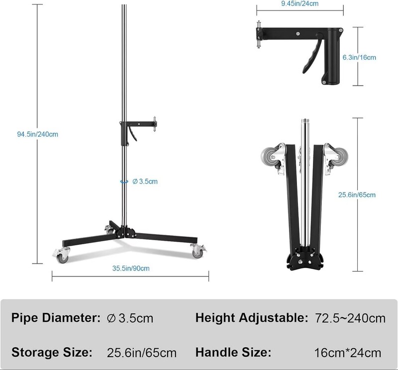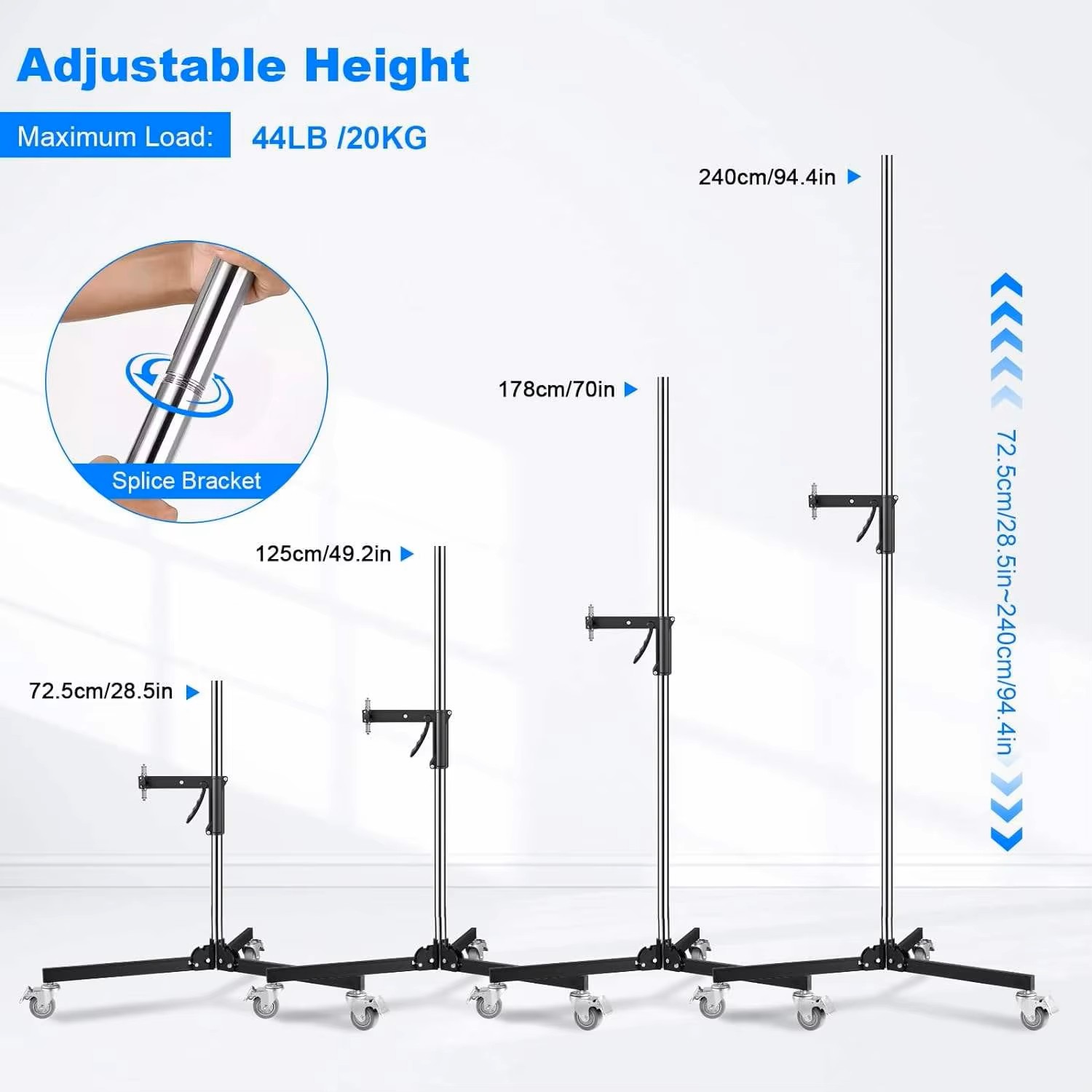 ستاند حامل إضاءة شديد التحمل مع مقبض قابل للإزالة وعجلات دوارة