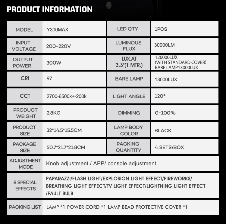 8 SPECIAL EFFECTS:PAPARAZZI, FLASH, EXPLOSION LIGHT EFFECT, FIREWORKS, BREATHING LIGHT EFFECT, TV LIGHT EFFECT, LIGHTNING LIGHT EFFECT, FAULTY LIGHTBULB
