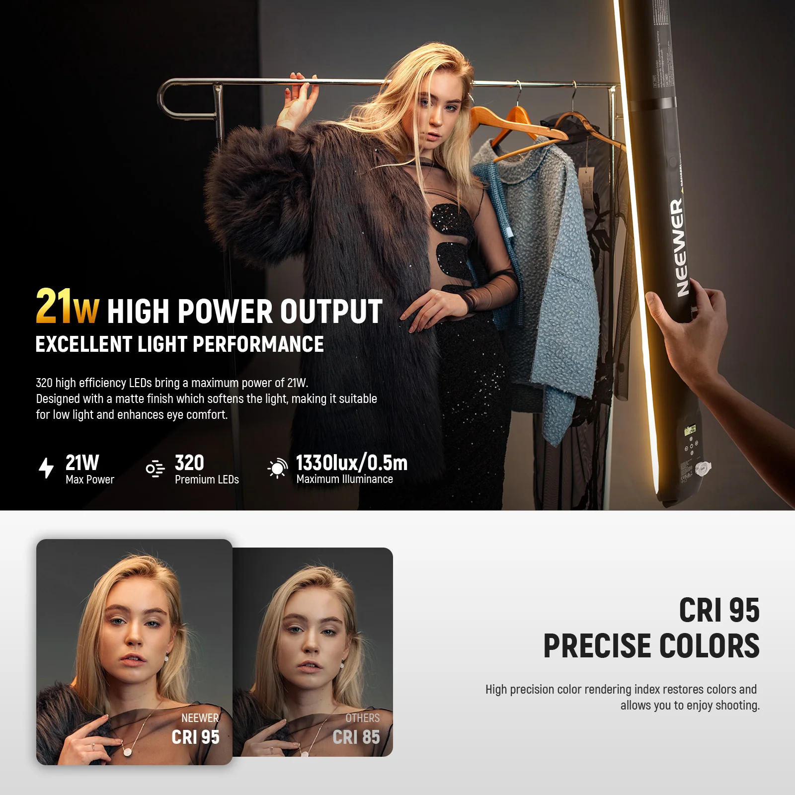 - الحد الأقصى للإضاءة: 1300 لوكس/0.5