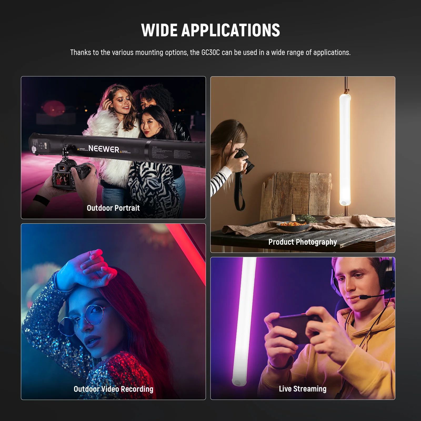 مصباح تعبئة LED قابل للنفخ محمول باليد NEEWER BASICS GC30C بقدرة 30 واط RGB