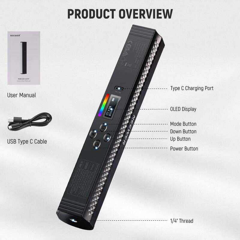 عصا إضاءة يدوية مغناطيسية NEEWER TL20C RGB