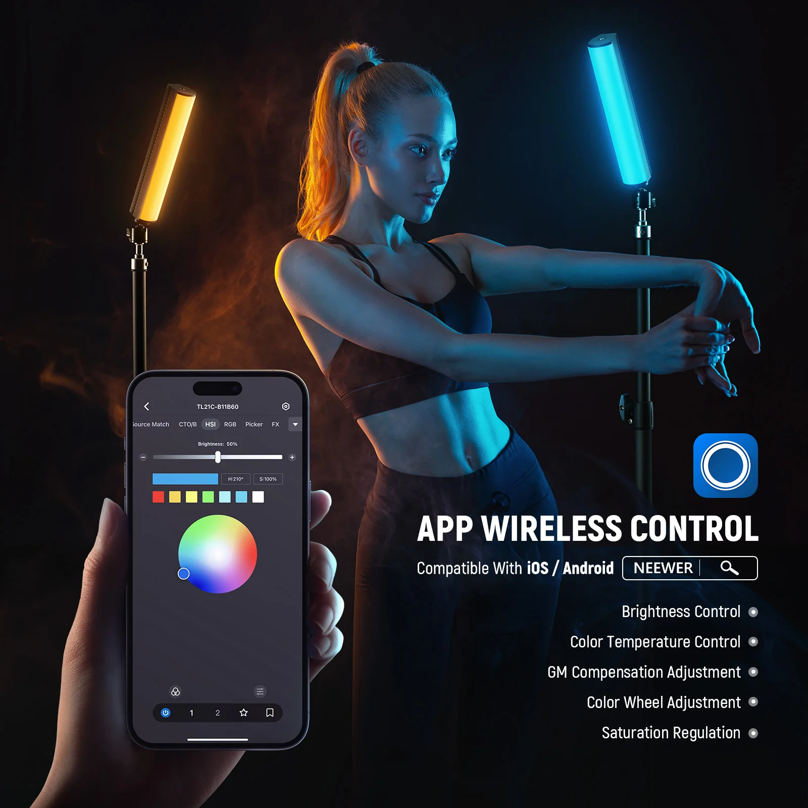 مجموعة عصا الإضاءة المغناطيسية المحمولة باليد NEEWER TL20C/TL21C RGB