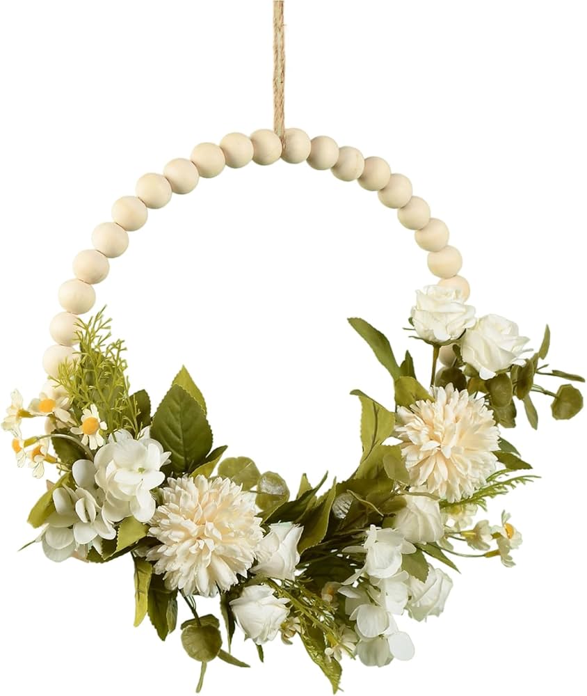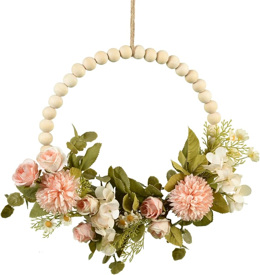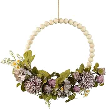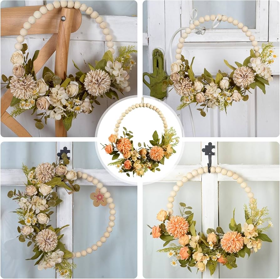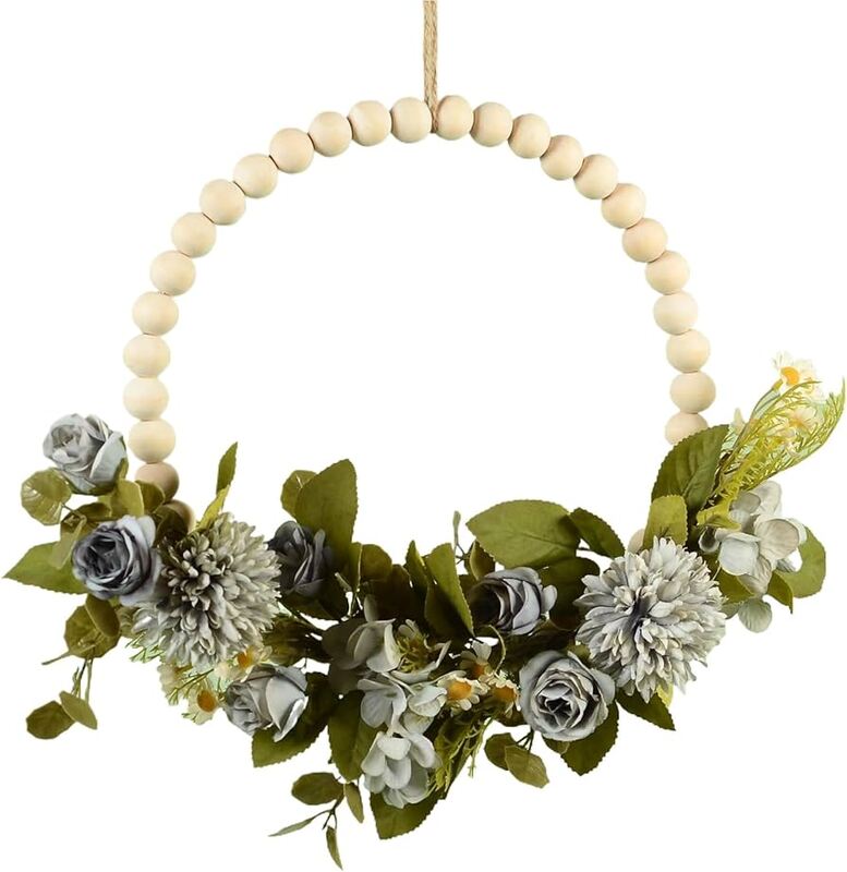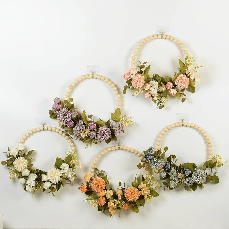 *ارتقِ بديكور حفلتك مع إكليل الزهور الاصطناعية، المُرصّع بخرز خشبي، ليُضفي لمسةً من الأناقة والسحر على أي مساحة.