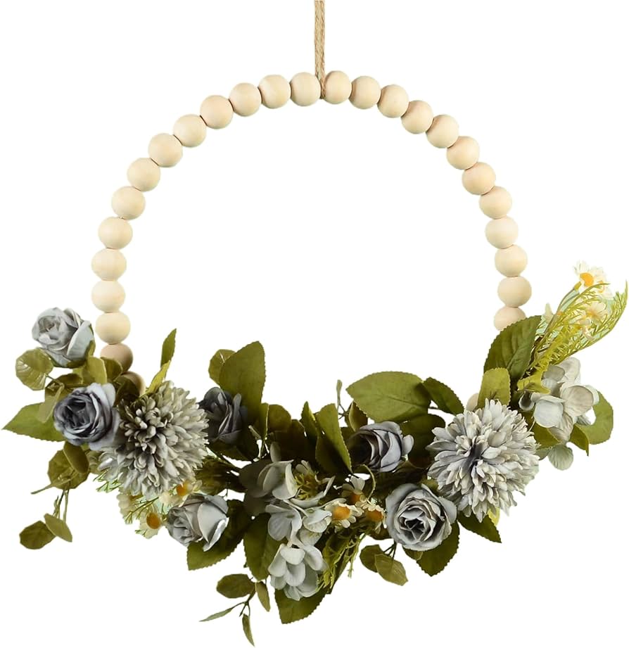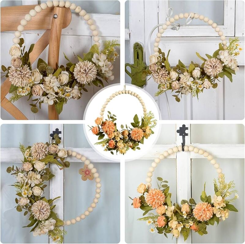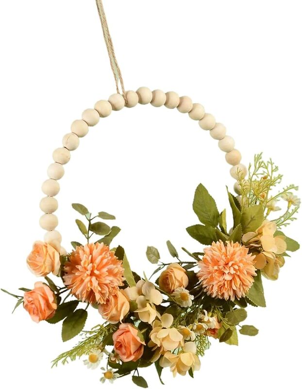 *حوّل غرفتك إلى مساحة معيشة أنيقة مع إكليل الزهور الرائع هذا من خرز الخشب، وهو إضافة أساسية لمجموعة ديكورات الجدران والأبواب لديك.