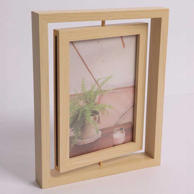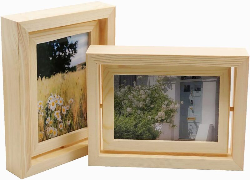 إطارات صور طويلة 2 قطعة 4 بوصة × 6 بوصة خشبية دوارة عائمة إطارات صور مزدوجة الجانبين عرض إطارات الصور للديكور المنزلي مكتب الزفاف