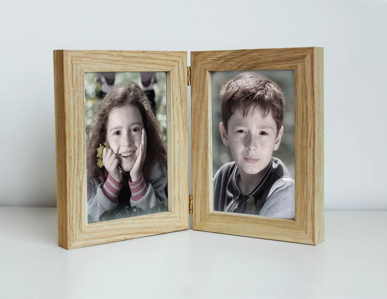 إطار صور خشبي مزدوج مصنوع بإتقان، مثالي لعرض صورتين عزيزتين جنبًا إلى جنب. يُضفي هذا الإطار الأنيق ذكرياتك بتصميمه الخالد، ما يجعله إضافة رائعة لأي ديكور. مثالي لالتقاط وعرض اللحظات المميزة بلمسة من الدفء والأناقة!