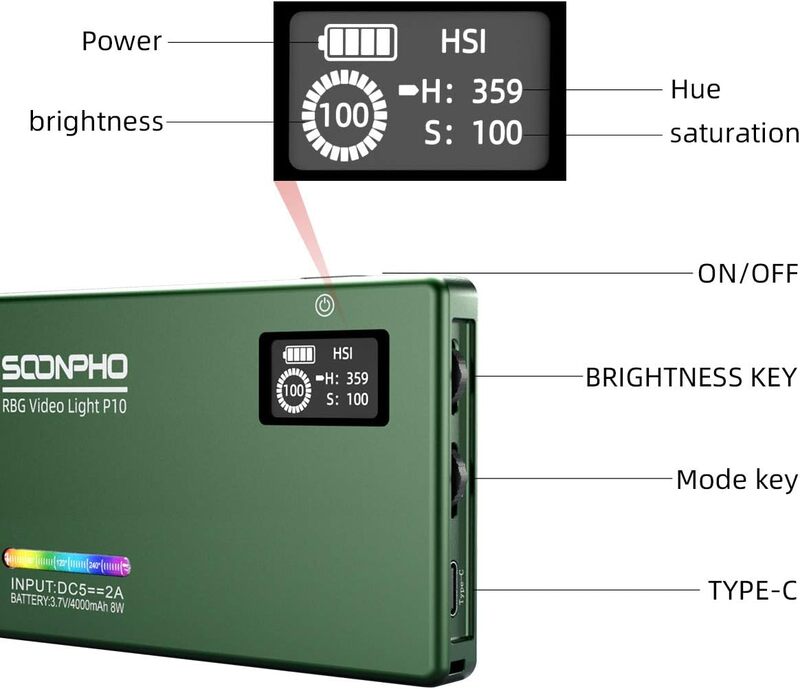 سوونفو مصباح فيديو P10 LED RGB 8 واط، ضوء كاميرا التصوير الفوتوغرافي قابل للتعتيم 2500-8500 كلفن LED RGB لوحة ضوء لوحة ضوء CRI 95+