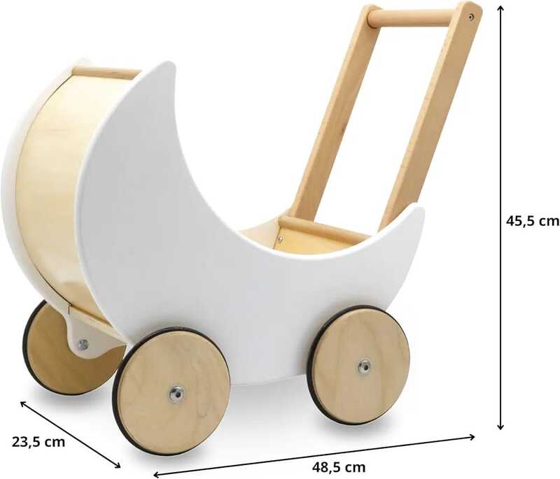 تصميم جمالي بتصميم بسيط وطبيعي يناسب تمامًا غرفة أي طفل. عربة الدمية ليست مجرد لعبة، ولكنها أيضًا عنصر زخرفي أنيق يجذب كل من البنات والأولاد.