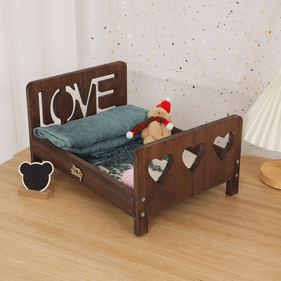 (L13) سرير خشبي شكل قلب صغير للأطفال حديثي الولادة اكسسوارات للتصوير